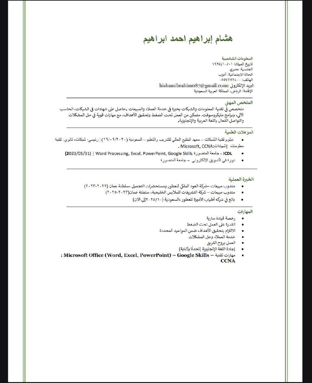 طلب وظيفة بائع في مجال العطور أو الملابس