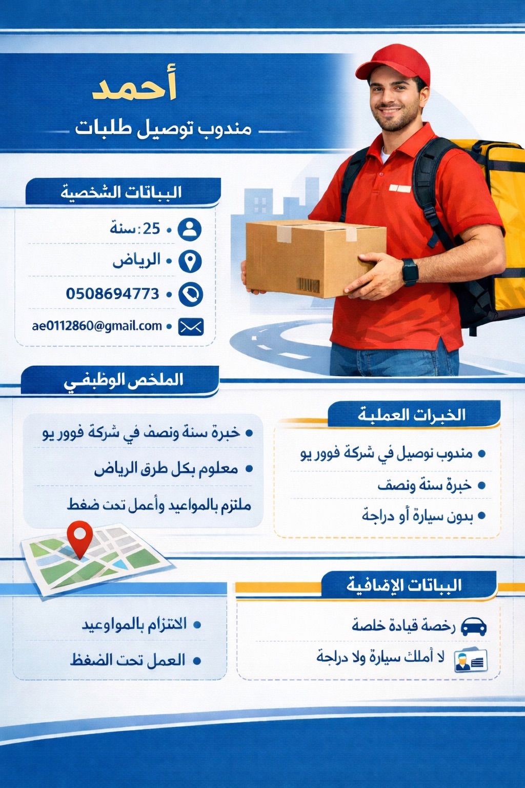 مندوب توصيل وملم بكل طرق الرياض خبرة سنة ونصف