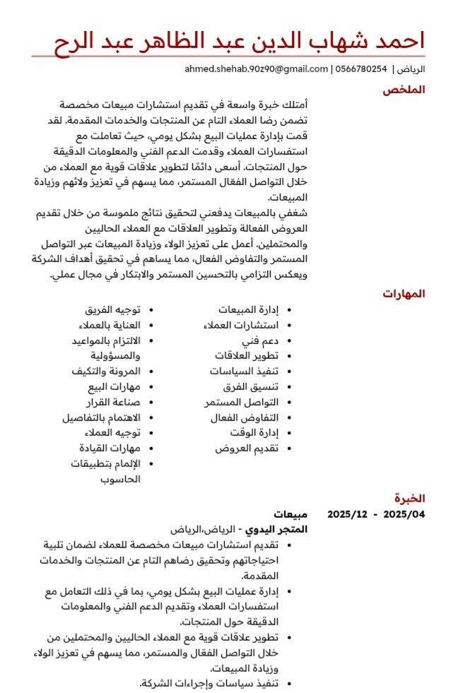 ابحث عن وظيفة بائع خبرة في مجال البيع والاقناع وخدمة العملاء وعرض المنتج بطريقة جذابه والعمل ضمن فريق وتوجيه العملاء