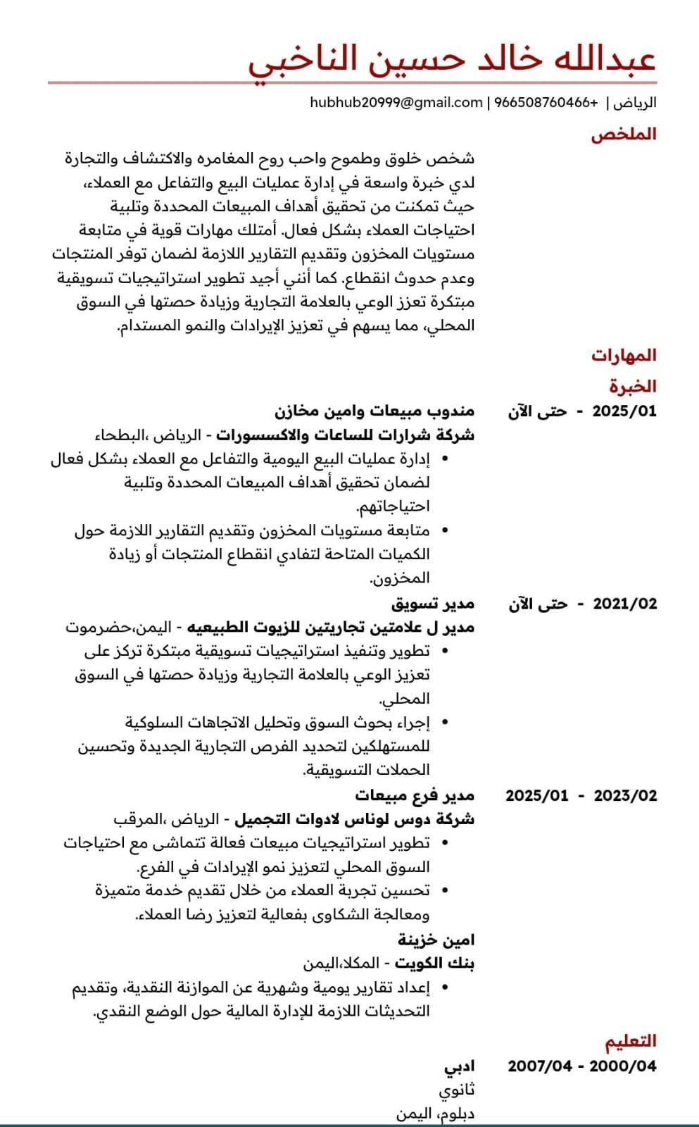ابحث عن وظيفة مندوب مشتريات أو مبيعات امتلك خبرة 5 سنوات في مجال المبيعات والتسويق وخبرة محاسبيه 13 سنة في الرياض
