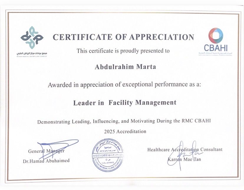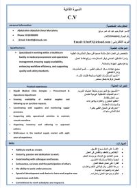 خبرة 8 سنوات في المشتريات الطبية والاجهزة، وإدارة سلسلة الإمداد، مع التزام كامل بتطبيق معايير جودة سبا هي وضمان كفاءة وسلامة الإمدادات الطبية