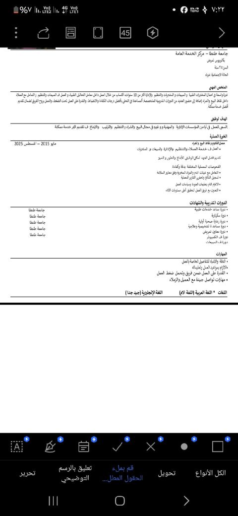 خريج إدارة أعمال بخبرة في المبيعات، التسويق، وخدمة العملاء، امتلك مهارات تنظيمية وتحليلية قوية، وأجيد العمل تحت الضغط وتحقيق أهداف المبيعات. متمكن من استخدام Microsoft Office وادخال البيانات، وأسعى للمساهمة في تطوير الأداء وتحقيق نمو المؤسسة