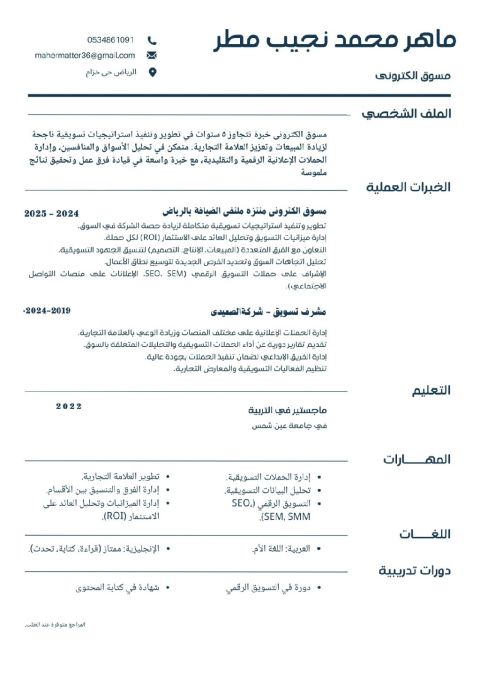 ابحث عن عمل تسويق الكتروني أجيد ادارة صفحات التواصل الاجتماعي وعمل الحملات الاعلانية المموله والتصاميم الاحترافية وتحليل الحملات الاعلانية بخبرة في جميع المنصات الاعلانية خبرة في التعامل مع العلامات التجاريه والمنتزهات والمطاعم وشركات السيارات داخل السوق السعودي