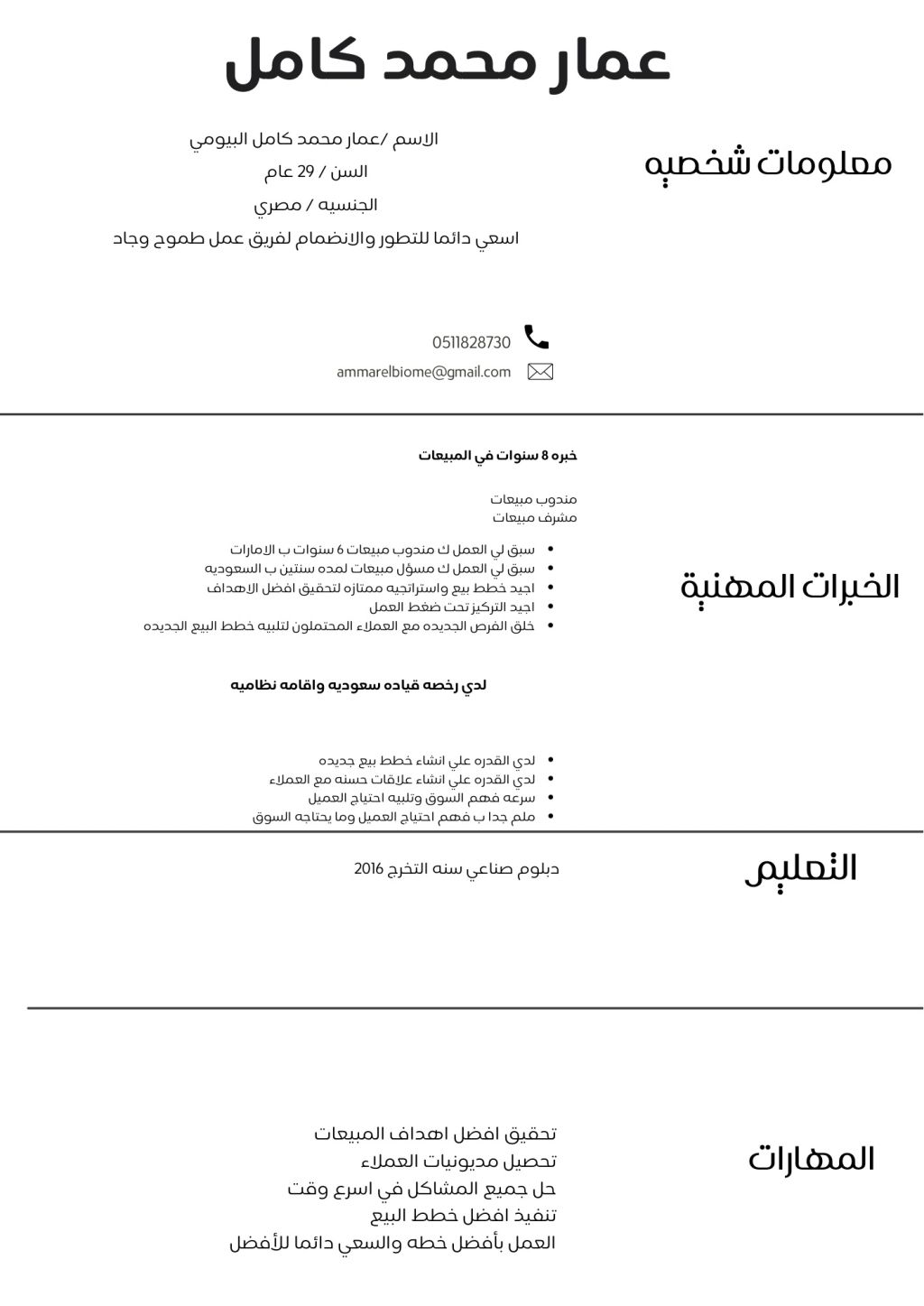 مندوب مبيعات مصري الجنسية متفوق جدا خبرة في المبيعات والتسويق 5 سنوات ابحث عن فرصة عمل إقامة قابلة للنقل ورخصة قيادة حسن المظهر العمر 29 سنة اسعي دائما للتطور