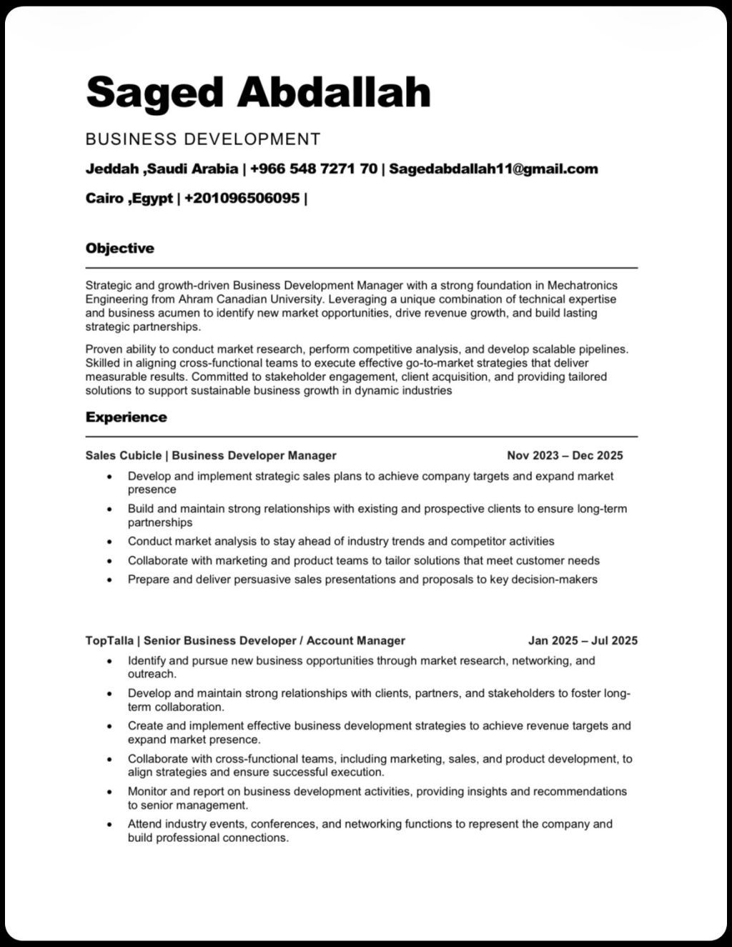 Business development manager looking for opportunity with a strong engineering background in mechatronics engineering more than 6 years of experience with different companies and domains