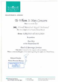I am Ahmed, an Egyptian national residing in Saudi Arabia. My occupation on my residency permit is loading/ unloading worker. My residency permit is valid. I am looking for work. My experience and skills include 1/ Sales (excellent) 2/ Tourism and Hotels ( I have a certificate of experience) 3/ Computer skills (excellent) 4/ Factories and Companies ( I have a professional CV with all the details