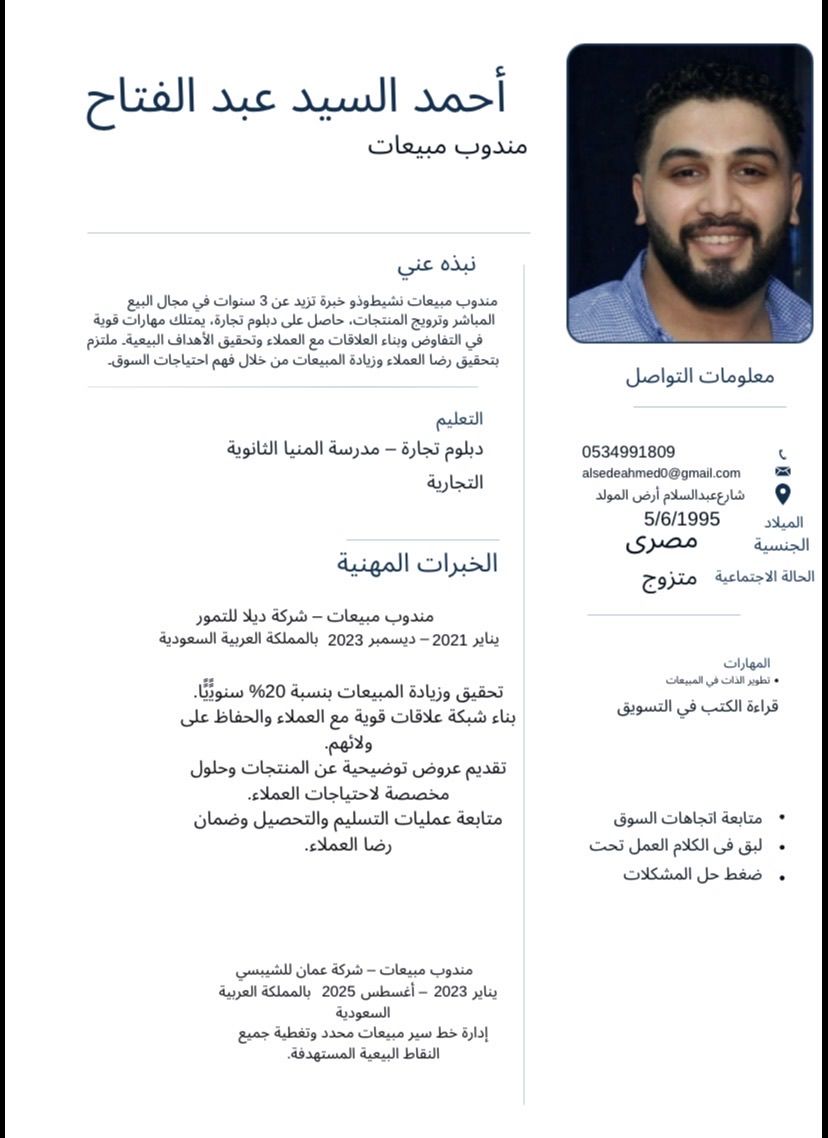 مندوب مبيعات خبرة 5 سنوات في المبيعات في الرياض موجود في الرياض للتواصل