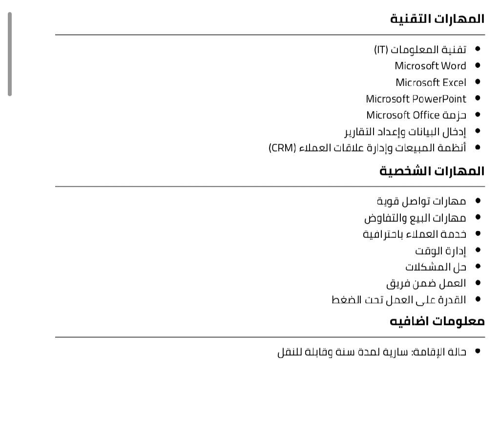 مندوب مبيعات - خبرة وجدية مندوب مبيعات شاطر، عندي خبرة في التعامل مع العملاء وتحقيق التارجت، أعرف اشتغل تحت ضغط وبحب الشغل القائم على النتائج. ملتزم، لبق، وعندي استعداد اشتغل دوام كامل أو جزئي