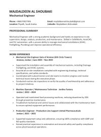 مجد الدين الشوب كي من الأردن بكالوريوس هندسة ميكانيك حديث التخرج خبرة على الدبلوم (تحكم صناعي) 3 سنوات متاح في الرياض ابحث عن فرصة عمل، لو تكرمتم الى متاح عنده فرصه بكون ممنون ويعطيكم العافية رقم