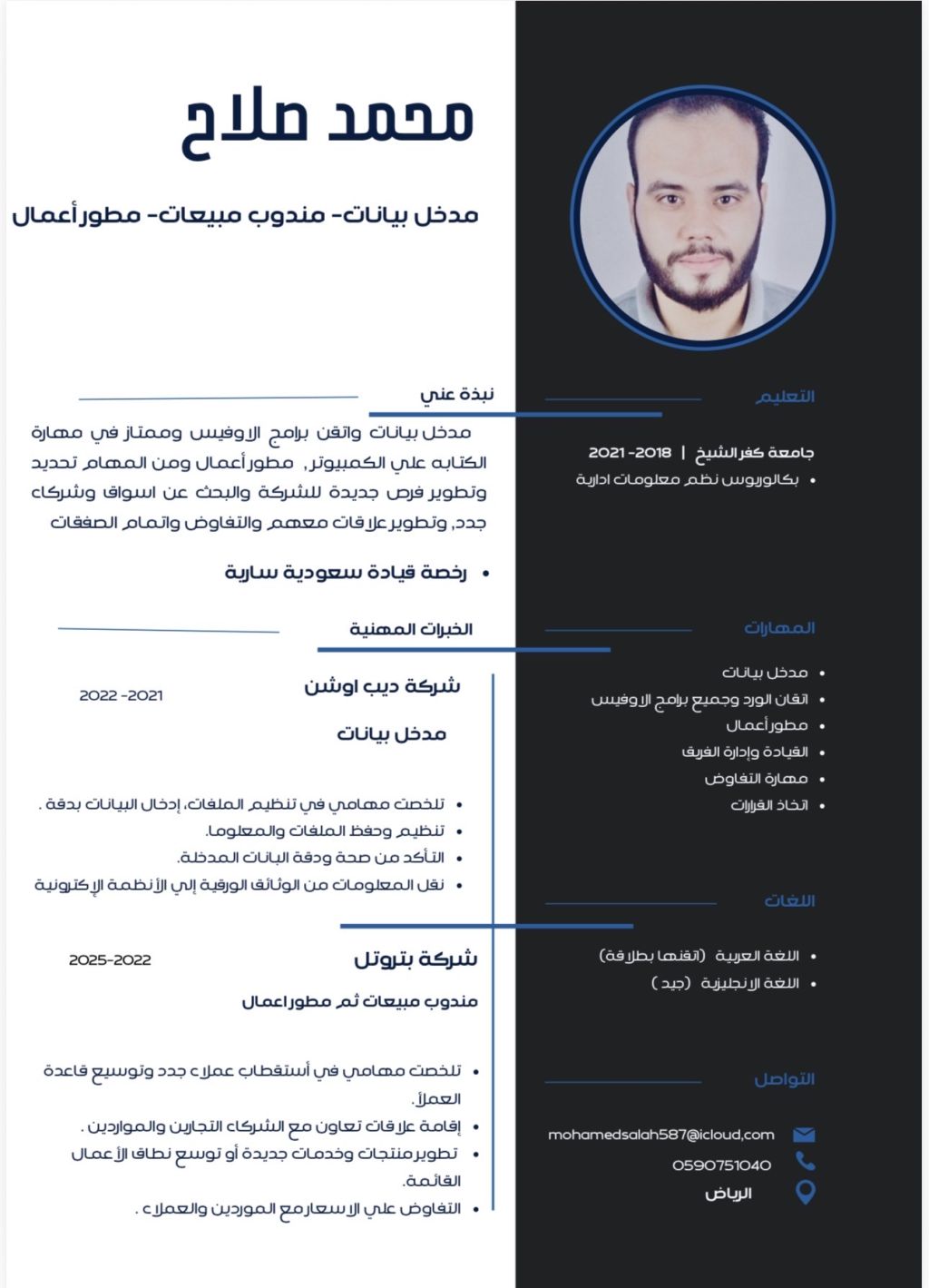 ابحث عن فرصة عمل لدي خبرة في مجال المبيعات والمشتريات، وأجيد التعامل مع العملاء والتفاوض والعمل تحت ضغط وتحقيق الأهداف. جاهز للعمل فورا ملتزم وجاد في العمل ولدي رخصة قيادة