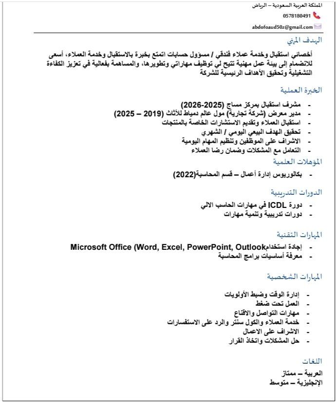 البحث عن عمل في خدمة العملاء أو الاستقبال أو المبيعات
