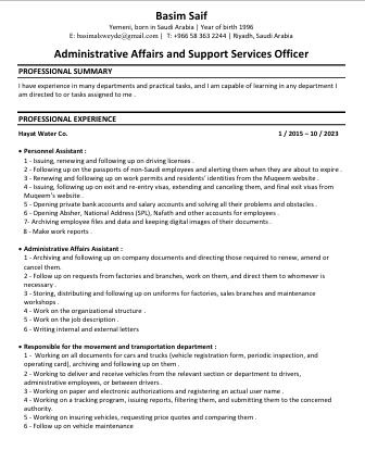 أنا باسم سيف، أكتب اليكم لأعبر عن حاجتي الشديدة لأي وظيفة، وخلال أل 11 سنة الفائتة كنت اعمل على بناء خير تي في مجالات مختلفة منها (الموارد البشرية - الخدمات المساندة - التسويق والمبيعات - تنظيم الفعاليات - استقبال الوفود والشخصيات المهمة والتجارة الالكترونية) وحينها وضعت استراتيجية للعمل على بناء خبرتي العملية بتجربة الوظائف المرتبطة بهذه المجالات واعتمدت على أخذ
