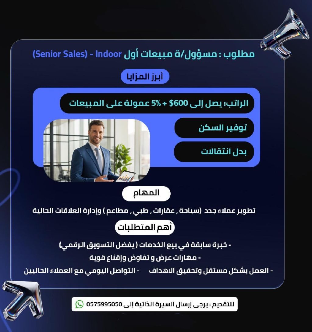 شركة تسويق رقمي في الرياض حي الحمراء بحاجة ل موظف / ة مبيعات مسوق ميداني يلزم خبرة في بيع المنتجات والخدمات الرقمية، مهارات عرض وتفاوض، القدرة على العمل بشكل مستقل وتحقيق الأهداف. ترسل السيرة الذاتية للواتساب مع ذكر اسم الوظيفة