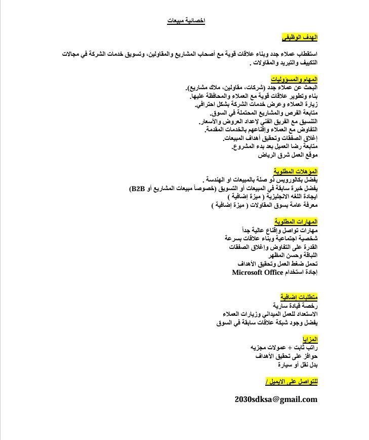 مطلوب مسوقين في مجال المقاولات والتبريد والتكييف في الرياض