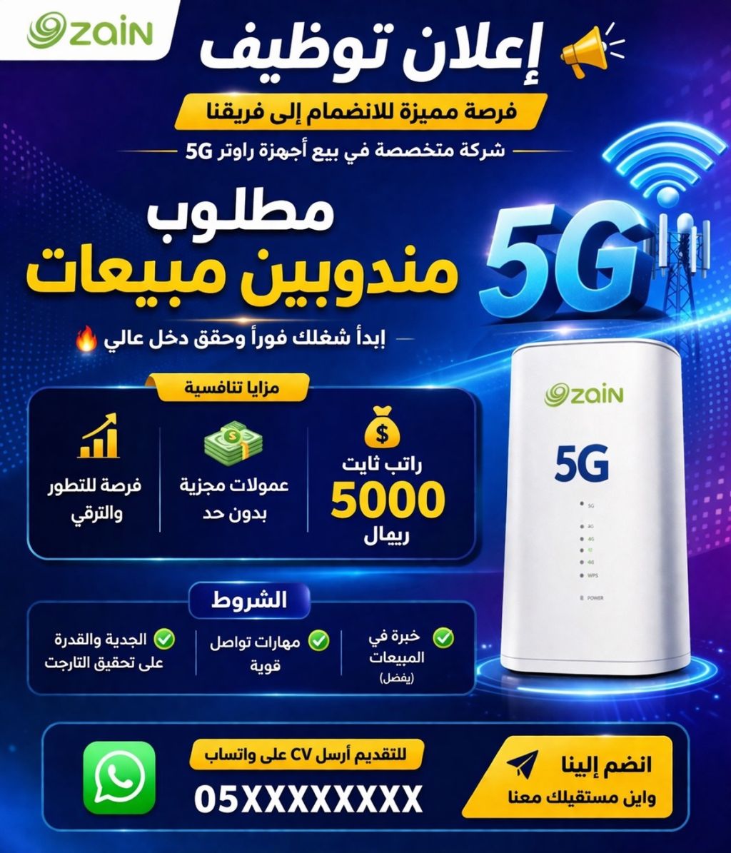 اعلان توظيف - فرصة شغل مميزة في الرياض شركة ينت تعلن عن فتح باب التوظيف ل مناديب ومندوبات مبيعات مكان العمل الرياض المميزات راتب ثابت 5000 ريال عمولات مغرية (بدون حد) فرصة للتطور والترقي بيئة عمل محفزة للتقديم أرسل أل CV