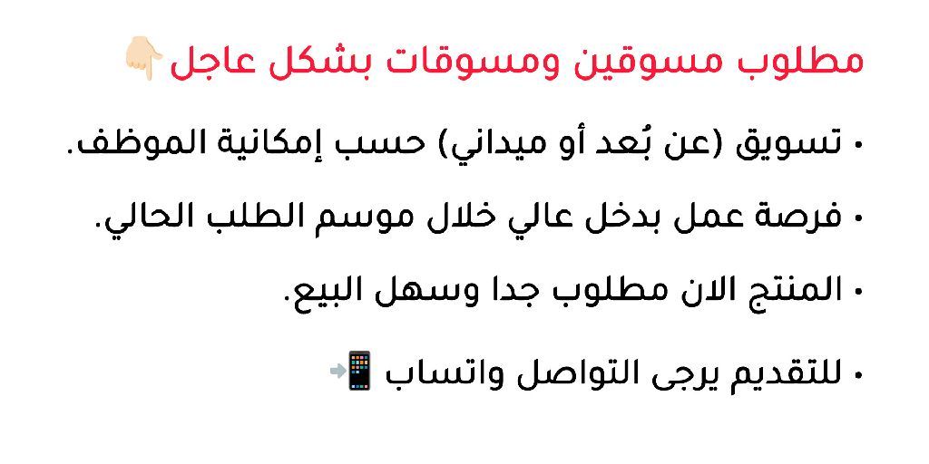 نحن مصنع في الرياض حي الشفاء لدينا خبرة أكثر من 13 سنة في السوق نصنع منتج معروف ومطلوب بشكل كبير خلال موسم الصيف نبحث عن مسوقين ومسوقات للعمل معنا عن بعد أو ميداني حسب الامكانية المجال مناسب جدا للأشخاص الجادين الراغبين بتحقيق دخل فعلي قوي من المبيعات والفرص حاليا نشطة ومناسبة جدا