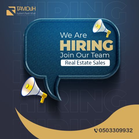 مطلوب رجال وبنات للعمل في شركة طموح للتسويق العقاري في الرياض بنظام العمولة. فرصة مميزة لكل شخص عنده شغف بال real estate ورغبة حقيقية في النجاح وتحقيق دخل عالي. اذا عندك مهارات تواصل قوية وطموح تبني مسارك المهني معنا، هذه فرصتك. بيئة عمل احترافية ودعم كامل لتطوير مهاراتك وتحقيق أفضل النتائج. للتقديم أرسل أل CV عبر