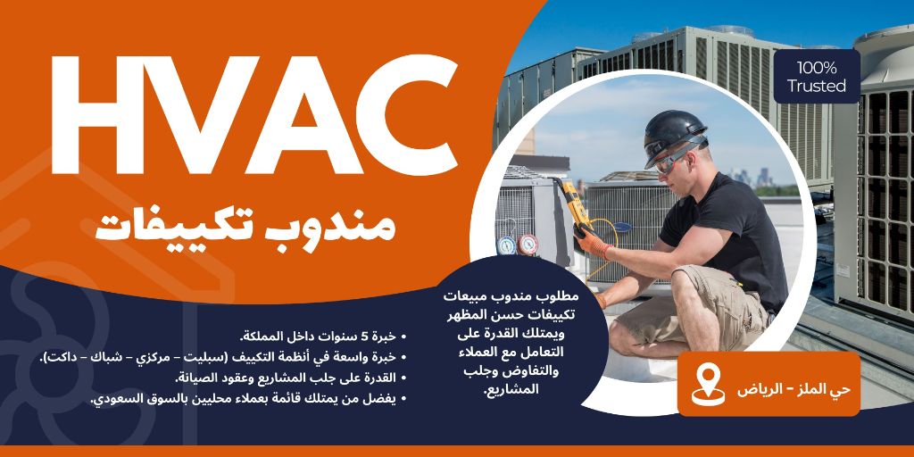 مندوب صيانة ومشاريع تكييف محترف وذو مظهر حسن، يمتلك معرفة كاملة بمجال التكييف وخبرة عملية تمتد لأكثر من 5 سنوات داخل المملكة. خبرة واسعة في أنظمة التكييف (سبليت - مركزي - شباك - داكت) القدرة على جلب المشاريع وعقود الصيانة. يفضل من يمتلك قائمة بعملاء محليين بالسوق السعودي. ويفضل من يمتلك سيارة. العمل بحي الملز بمدينة الرياض