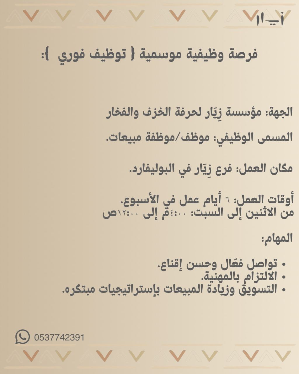 فرصة وظيفية موسمية (توظيف فوري) مطلوب موظف / موظفة مبيعات البولفار