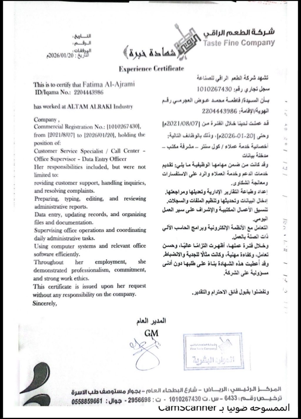 ابحث عن فرصة عمل لدي خبرة في خدمة العملاء، الكول سنتر، ادخال البيانات، والاشراف المكتبي. أجيد التعامل مع العملاء، اعداد التقارير، تنظيم الملفات، واستخدام أنظمة وبرامج الحاسب بكفاءة. ملتزمة، منظمة، وأتمتع بروح العمل الجماعي وتحمل المسؤولية. خبرتي في مصنع حلويات مراقبة الانتاج والجودة وادخال البيانات والملاحظات وتعديل ع المنتجات موقع السكن السويدي الغربي للتواصل