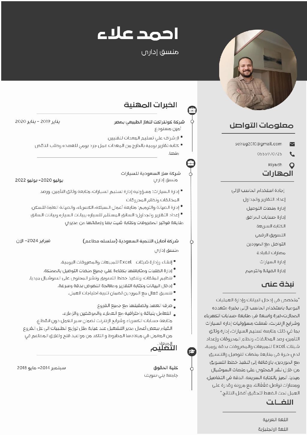 ابحث عن فرصة عمل مناسبة في مجال السكرتارية أو تنسيق المواعيد داخل المملكة العربية السعودية. لدي خبرة جيدة في التعامل مع العملاء، إدارة الوقت، وتنظيم الأعمال المكتبية. أجيد استخدام الحاسب الآلي وبرامج الأوفيس، والعمل تحت ضغط، والالتزام بالمواعيد