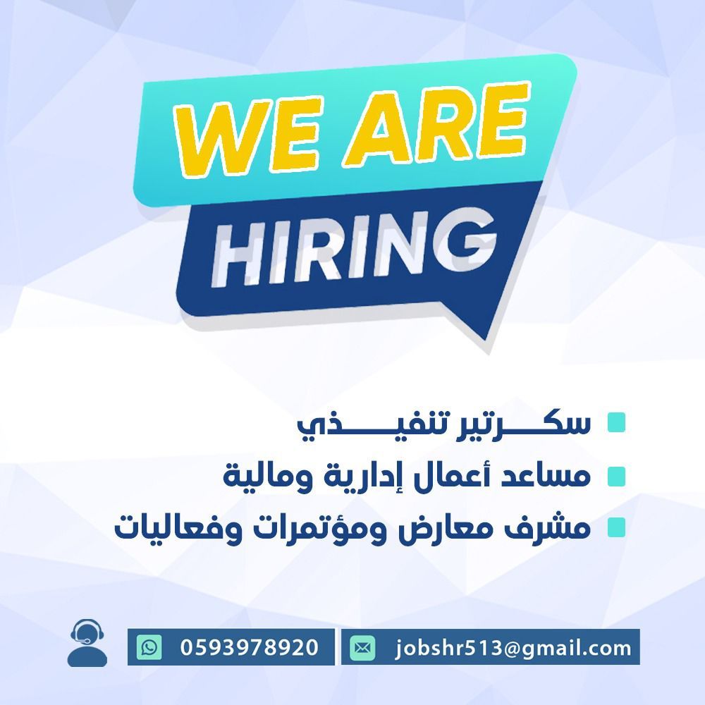 شركة كبرى تعمل في مجال المعارض والمؤتمرات والاتصال والانتاج والتسويق، تعلن عن حاجتها للوظائف الآتية سكرتير تنفيذي ومساعد أعمال ادارية ومؤتمرات وفعاليات في الرياض
