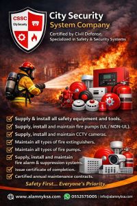 شركة أنظمة سلامة معتمدة من الدفاع المدني - تركيب انذار حريق ومكافحة حريق وكاميرات مراقبة في جميع مدن السعودية