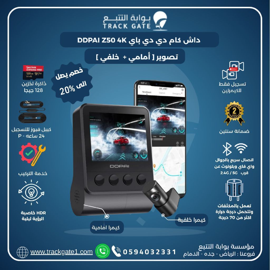 داش كام Z50 - أم انك يبدأ من أول رحلة. توفر تصوير Full HD واضح مع زاوية واسعة تغطي الطريق بالكامل، وتعمل بتسجيل تلقائي عند تشغيل السيارة مع خاصية Loop Recording للتسجيل المستمر بدون توقف مزودة بمستشعر صدمات يحفظ المقاطع المهمة تلقائيا، تدعم كرت ذاكرة وتصميم صغير وأنيق لا يعيق الرؤية، خيار مثالي للتوثيق والحماية أثناء القيادة كل يوم