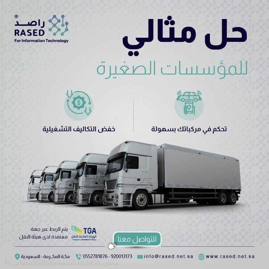 راصد. أمان أعلى لمركبتك وتحكم كامل بأسطولك سواء كنت في مكتبك خلف الشاشة أو كنت في الميدان عبر جوالك، شركة "راصد" تمنحك التحكم الكامل والذكي بمركباتك (خفيف - ثقيل - صهاريج) بأحدث أنظمة التتبع المعتمدة. خدماتنا المتكاملة تشمل 1 منصة راصد الذكية (توافق كامل مع الاجهزة) إدارة مرنة تحكم كامل بأسطولك عبر جهاز الكمبيوتر (للتقارير العميقة والإدارة المكتبية) وعبر تطبيق الجوال (للمتابعة اللحظية أثناء
