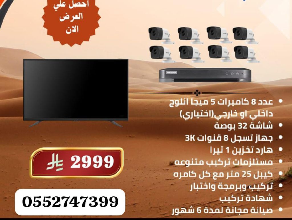 متوفر لدينا عروض جنونيه لكاميرات المراقبه تخفيض 50% اللحق العرض ولمدة عشره أيام باقة متكامله شامله التركيب والبرمجة بأقل الأسعار