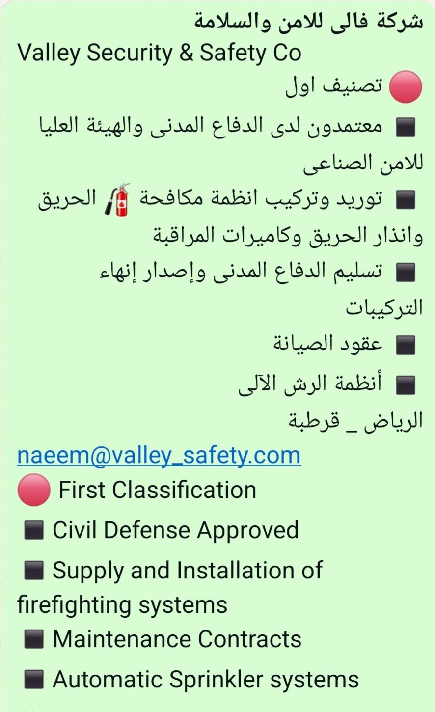 شركة فالى للأمن والسلامة - توريد وتركيب أنظمة الحريق والدفاع المدني والكاميرات