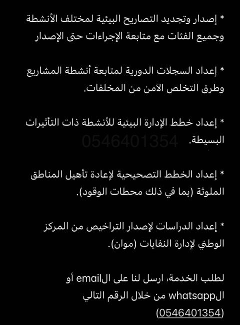 Issuing Environmental permits approved by the National Center for Environmental Compliance (NCEC) or (MWAN)