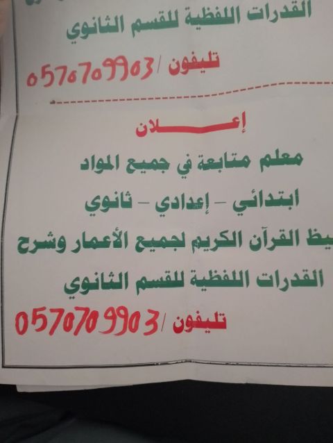 معلم تأسيس ومتابعة في كل المواد ابتدائي متوسط ثانوي