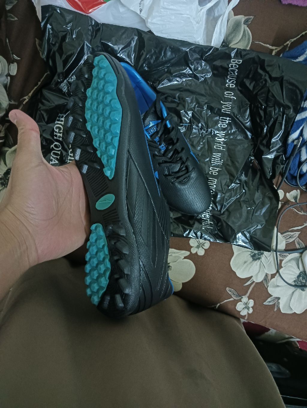 جزمة رياضة لكرة القدم. مقاس 43. جديدة غير مستعملة نهائيا. السعر 100 ريال. المكان منفوحة