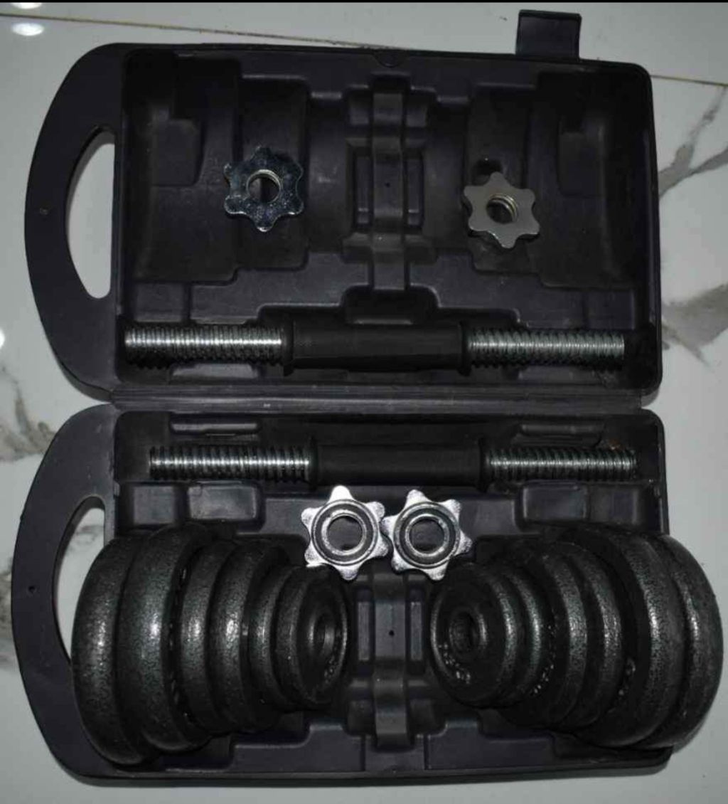 كرسي تمارين وشنطه أوزان 20 كيلو وبار مع طارتين كبار 20 كيلو المجموع 40 كيلوللبيع شنطه أوزن 20 كيلو وأيضا بار طويل مع طارتين كبار 20 كيلو وكرسي تمارين بمستويات متعددة من الزاوية 90 للكتف الى الصدر المائل الجميع بحالة ممتازة كما موضحا في الصور مجموع الأوزان 40 كيلو السعر 400 يشمل التوصيل