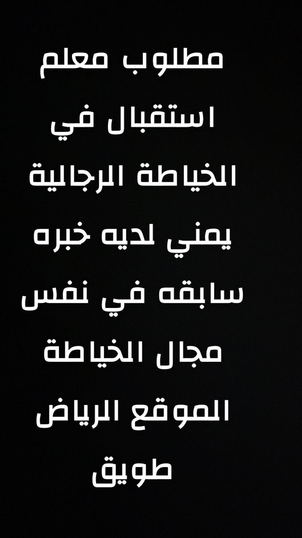A Yemeni or Indian men'tailor is needed prior experience in the field is essential, and the man must be well - mannered and respectful Work location in Riyadh, Tuwaiq district, Exit 29, Bilal Bin Rabah Street