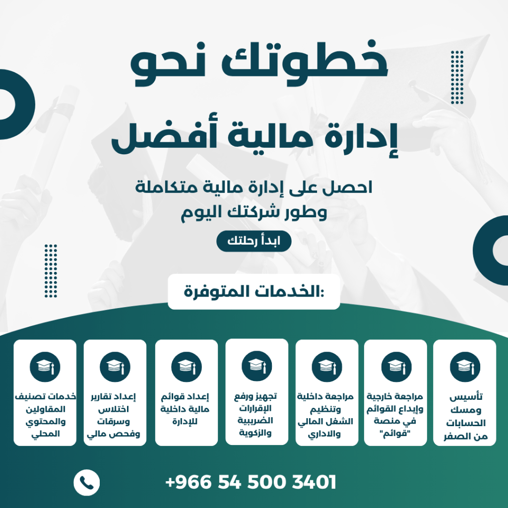 لو عندك شركة أو مشروع وعاوز تمسك حساباتك صح من البداية خليني أساعدك أنا بقدم خدمات محاسبية ومالية بشكل عملي وبسيط، بعيد عن التعقيد والكلام النظري، ومن أهم الخدمات تأسيس ومسك الحسابات من الصفر مراجعة خارجية وايداع القوائم في منصة "قوائم" مراجعة داخلية وتنظيم الشغل المالي والاداري تجهيز ورفع الاقرارات الضريبية والزكوية اعداد قوائم مالية داخلية للإدارة اعداد تقارير اختلاس وسرقات وفحص مالي