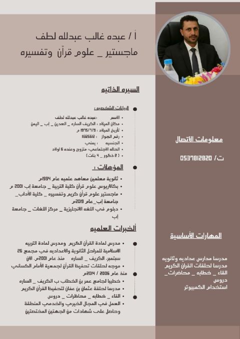مدرس قرآن كريم وعلومة. شهادة ماجستير. خبرة 25 سنة
