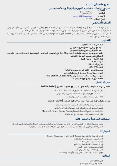 اعمل في مجال التدريس من فترة ولدي خبرة وحاصل علي ليسانس أداب قسم لغة عربية، وحاصل دبلوم تربوي ولدي خبرة في المدارس ومجال الدروس الخصوصية ولدي خبرة في مجالات ثانيه أخرى كثيره
