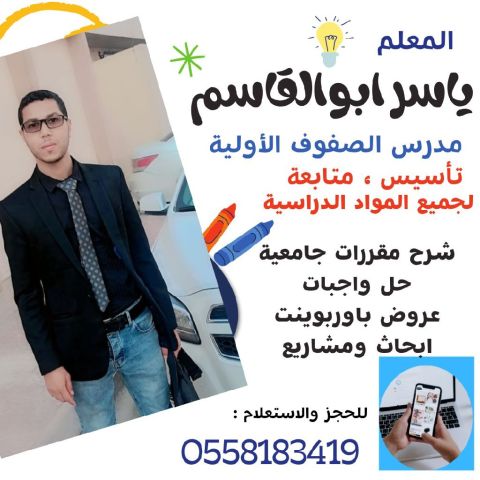 تعليم وتأسيس صفوف أولية، شرح وتخليص وعروض تقديمية وأبحاث مقررات جامعية لنواد الخدمة الاجتماعية والتسويق الرقمي