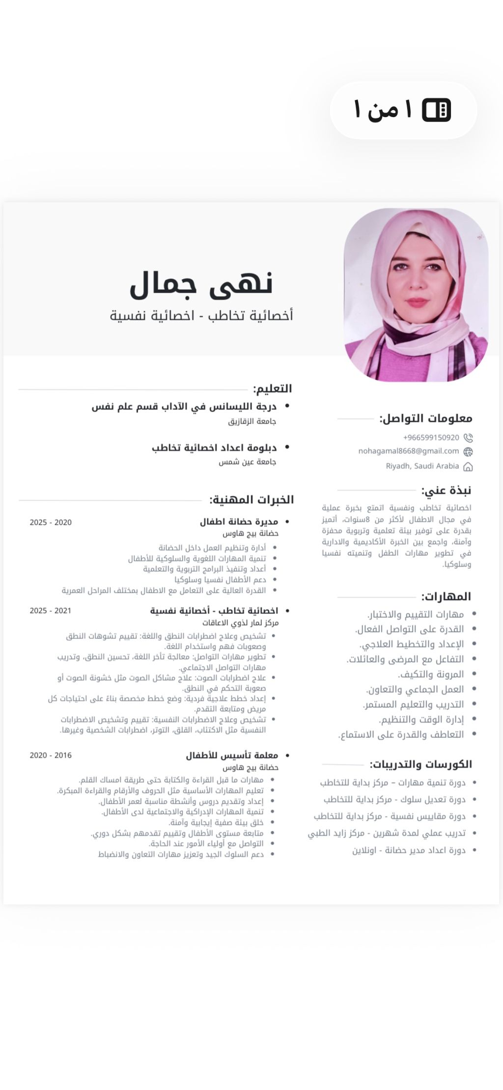 أخصائية تخاطب ومعلمة تأسيس وأخصائية نفسية