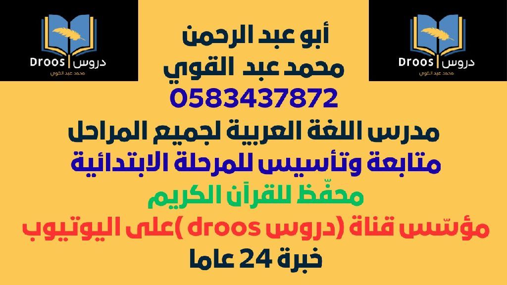 Abu Abdul Rahman is an Arabic language teacher for all levels, specializing in foundational and ongoing support for elementary school students, and a verbal reasoning skills trainer. He is the founder of the "Droos" Lessons) educational YouTube channel, Muhammad Abdul Qawi, with 7000 subscribers