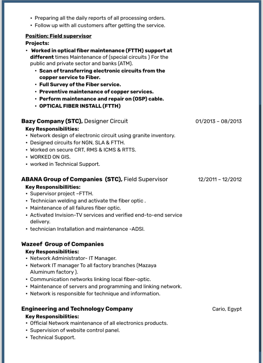 ابحث عن عمل مشرف ميداني منسق مشاريع - لدي خبرة 15 سنة بجميع مشاريع الاتصالات السعودية STC لمشاريع التركيبات وصيانة الفايبر FTTH خبرة باعمل الميداني والمكتبي