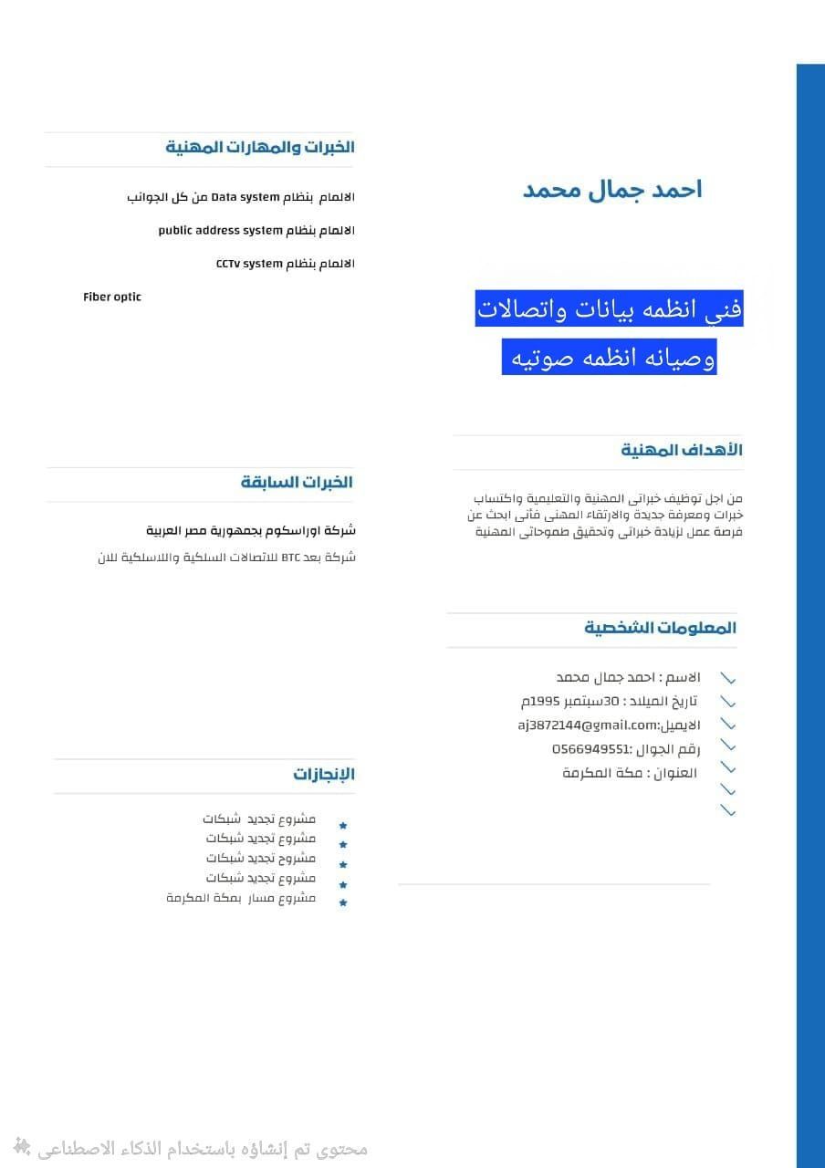 أنا فني أنظمة بيانات واتصالات وصيانة أنظمة صوتيه ابحث عن شركة وليس مؤسسة لدي خبرة عالية في شركات السعودية