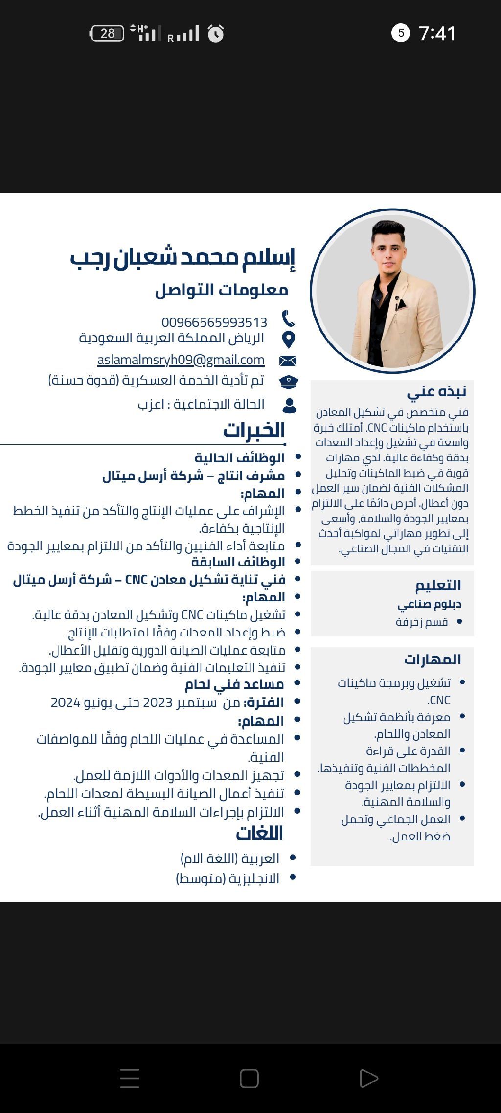 فني تنأيه CNC ابحث عن عمل الإقامة فيها سبع شهور