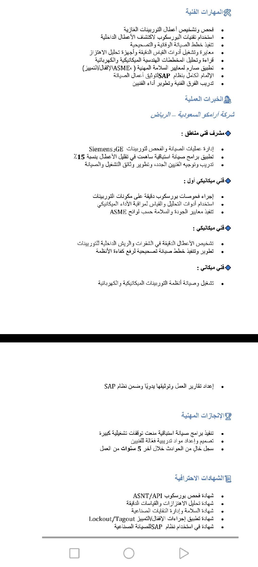 Senior Mechanical Supervisor/ GT Inspector (Saudi) 38 Years Aramco Exp) Seeking technical supervision/ maintenance roles in Riyadh. Expertise Gas Turbine inspection, Borescope technology, vibration analysis, team training, and strict safety compliance. Proficient in SAP maintenance. Ready to deploy expertise