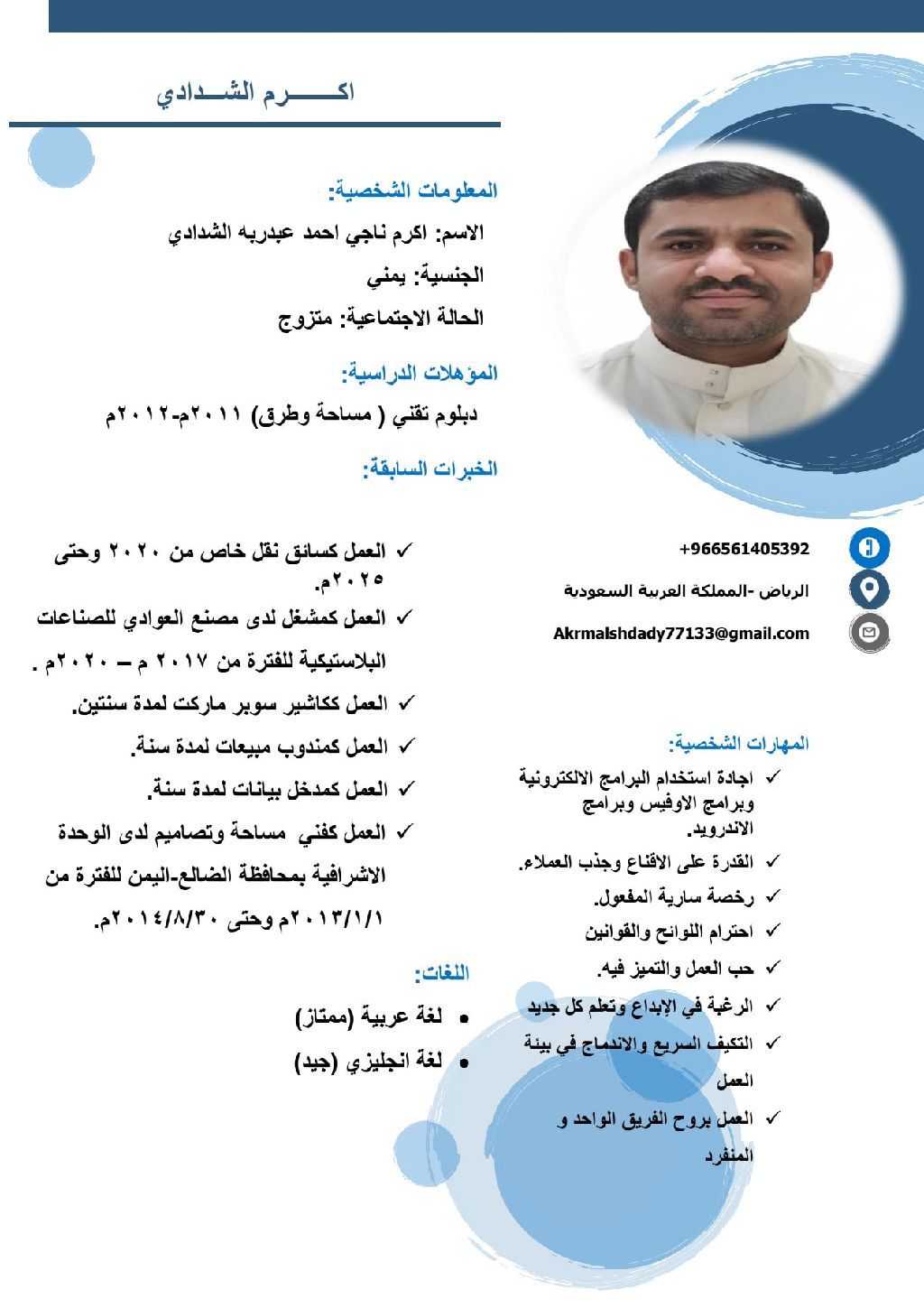 أنا خريج معهد تقني مساحة وطرقات أجيد استخدام اجهزة المساحة الجيبي أس وجهاز الليفل وجاهز اللأيكا وأيضا لدي القدرة على استخدام الكمبيوتر برامج الورد والاكسل كما أنه لدي خبرة سابقه في الاشراف الفني في مجال الطرق عملت لفترة لا تقل عن سنتين أجيد السواقة لمدة لا تقل عن 12 سنة إقامة ساره ورخصة سار به اعمل تحت أي ظرف واي ضغط متواجد في الرياض ابحث عن عمل وهذا رقمي