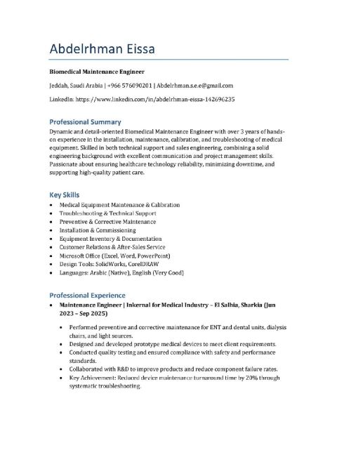 فني صيانة وحدات أسنان ووحدات ENT وسراير الرعاية واجهزة الشفط الجراحي وصيانة البورد الالكترونية المختلفة