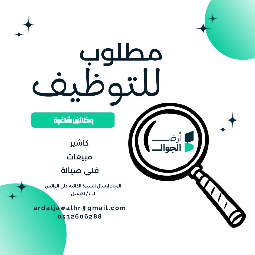 مطلوب موظفين للعمل لدى أرض الجوال في الرياض الوظيفة الشاغرة - فني صيانة نبحث عن أشخاص ملتزمين، جادين في العمل، ولديهم شغف بمجال الجوالات والخدمة المميزة للعملاء. مقر الادارة مخرج 29 للتقديم يرجى إرسال السيرة الذاتية عبر الواتساب أو الايميل التالي