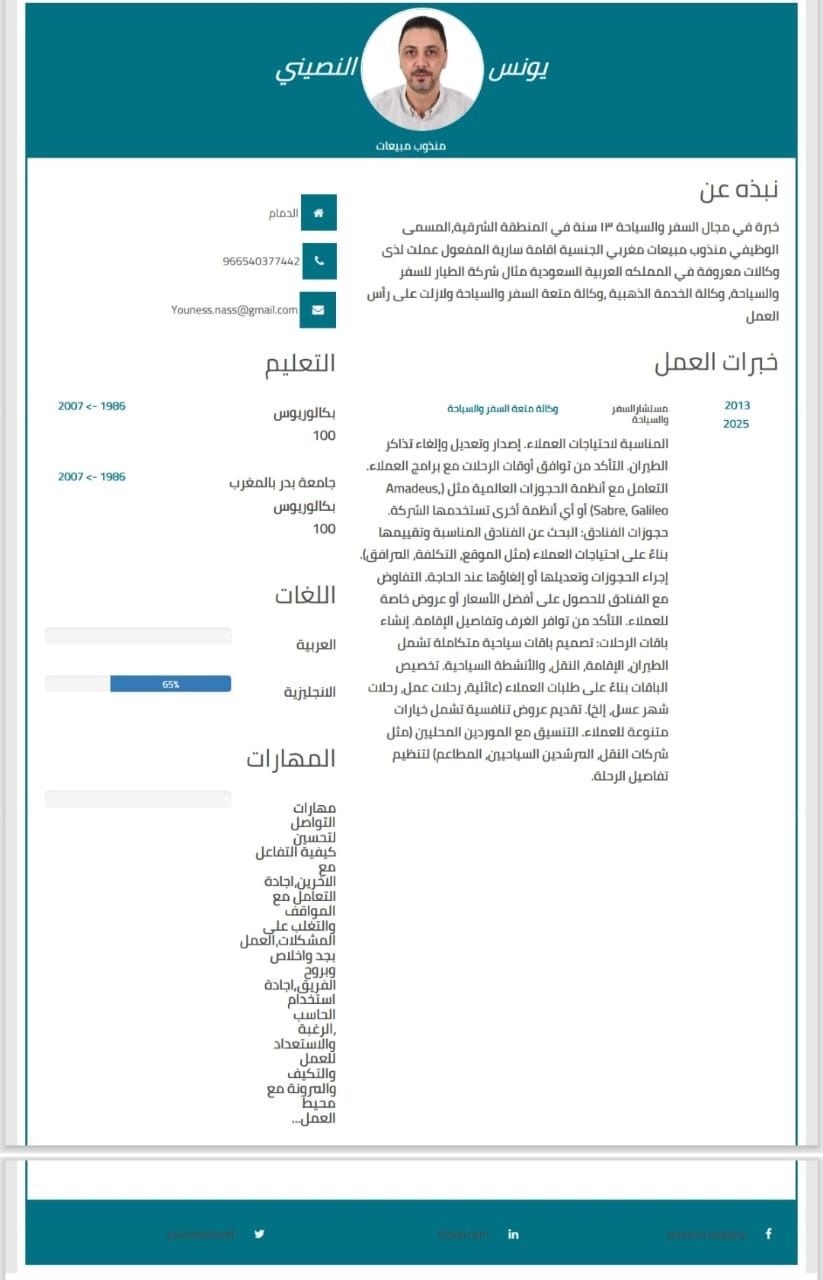 طلب عمل شركة للسفر والسياحة موظف مغربي الجنسية خبرة 15 سنة متاح للعمل فورا خبرة قوية في السوق السعودي في مجال السياحة وحجز الطيران واستخراج التأشيرات الشينغن والرخص الدولية مع قدرة علي آلية على تحقيق المبيعات وخدمة العملاء باحترافية المهارات حجز تذاكر الطيران (GDS & NDC) باحتراف - حجز فنادق (Rezlive - TBO - withnEarth) اعداد وتنظيم البرامج السياحية والبكجات لجميع دول العالم خبرة في التعامل مع